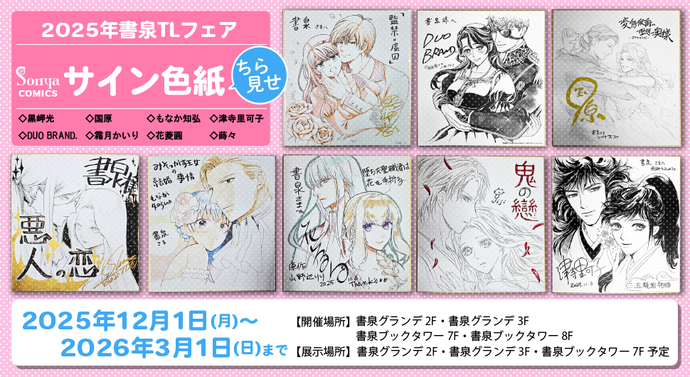 書泉2025年TLフェア Sonyaコミックス参加サイン色紙ちらっと見せ